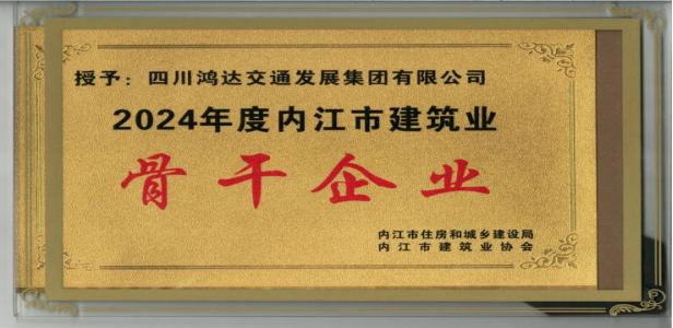 2024年度,四川鴻達交通發(fā)展集團有限公司獲“2024年度內(nèi)江市建筑業(yè)骨干企業(yè)”及“四川省建筑業(yè)先進企業(yè)”稱號,兩項榮譽是對鴻達交發(fā)公司深耕建筑領(lǐng)域的專業(yè)認可和長期堅持高質(zhì)量發(fā)展、積極履行社會責(zé)任的高度肯定。